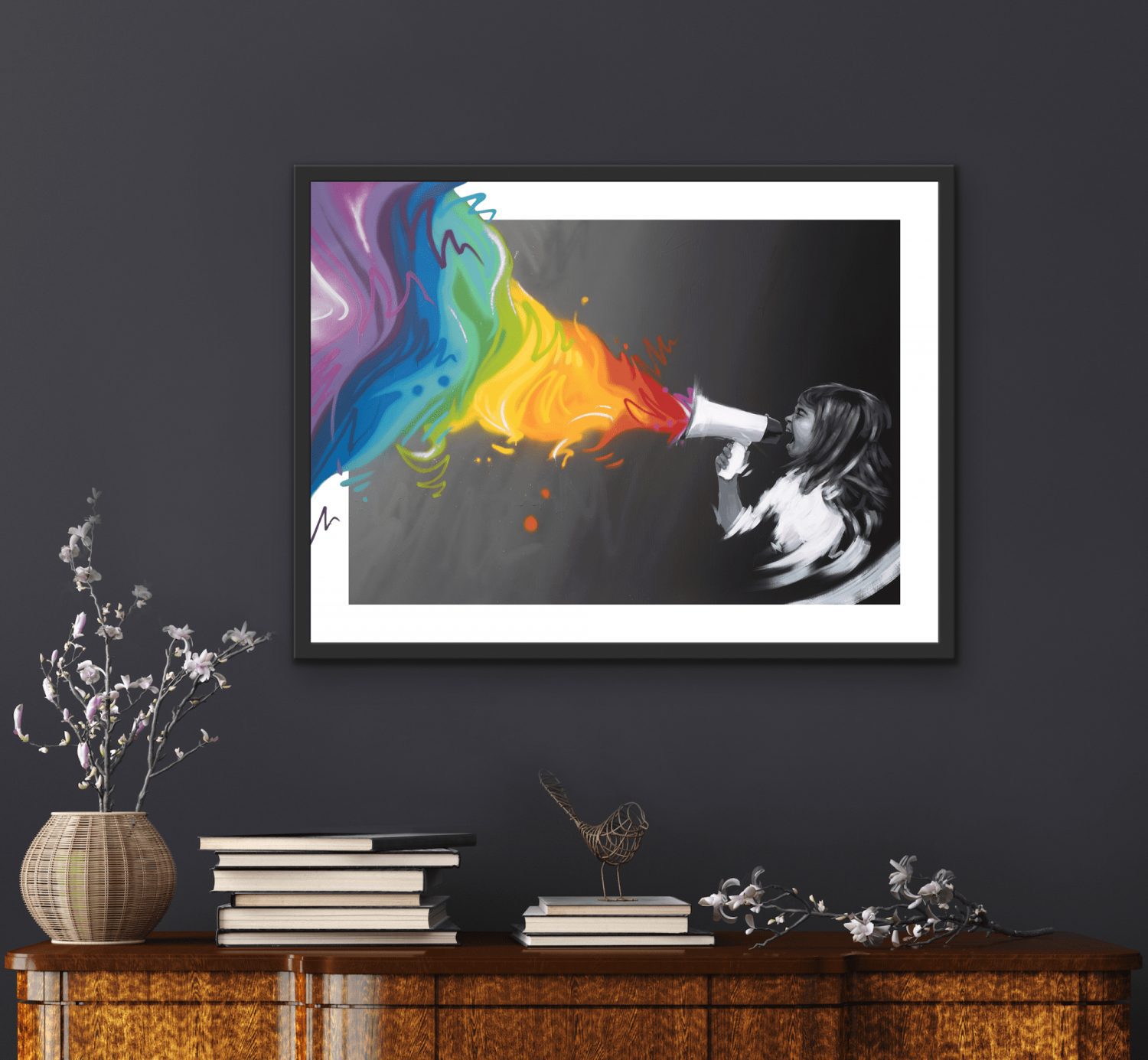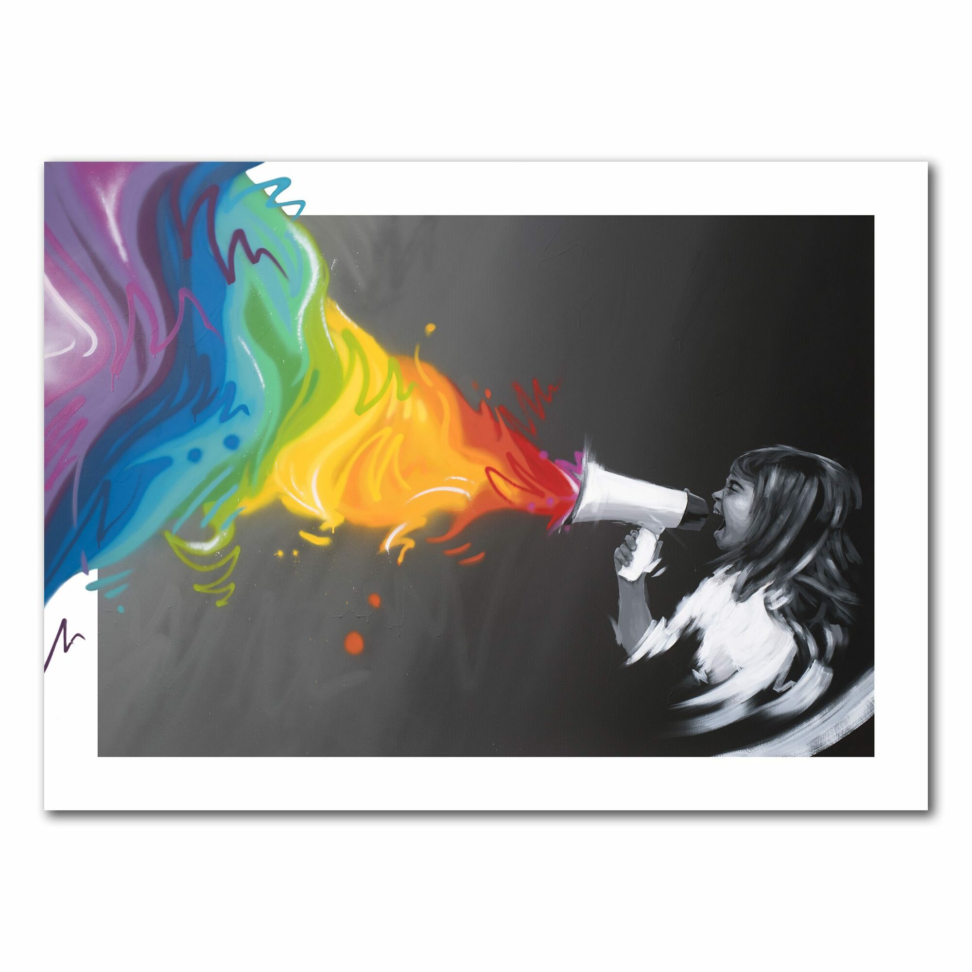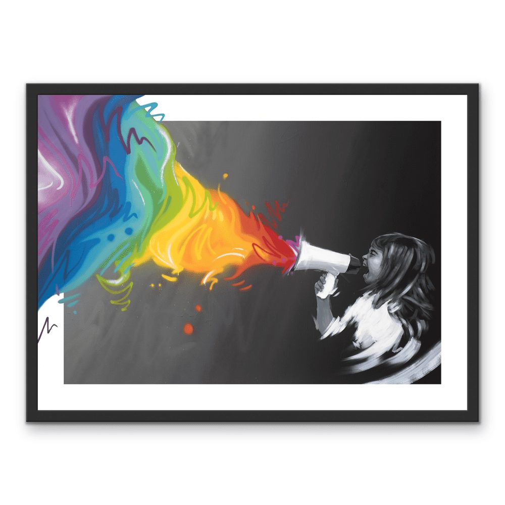 Lidenskap og stå-på-vilje. Eksplosjonen av farger er ment som en fargerik metafor til kreativiteten, galskapen, innsikten, nyskapningen som skjer når et menneske er kreativ. Den lille jenten brøler av inspirasjon skapertrang og fargene symboliserer endringer og mangfold.