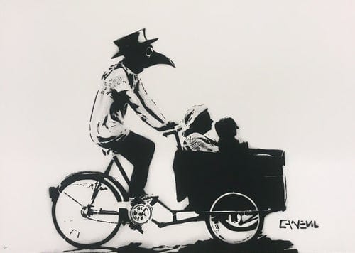 This has been an incredibly dark year for so many of us.We’re all pushing day to day through an extremely challenging period – one that nobody in our lifetime, has had to endure during «peace time”.Many have been ill, many are mourning the loss of love ones, many are struggling to keep their work situation afloat, many are missing their families abroad, many are just struggling to cope day to day.A short time ago, I painted Mourning Rush as a glimpse of everyday life for many of us. It initially appears as a dark image of our time, and it is, but delving a little deeper you’ll see a lighter side or message. It’s a reminder that we must do our utmost to accept this situation it for what it is, adapt, be smart, stay strong, keeping doing what we do as best as we can and keep pushing through till we get to the other end.~ ART FEE ~